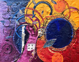 Mes oeuvres sont porteuses d'une multitude de tissages que je laisse émerger dans une expression abstraite. Elles sont comme des livres ouverts sur mes émotions, observations et rêves avec lesquels je vous invite à piocher, ressentir ou y voyager, un moment, je l'espère... Ma source d'inspiration, les éléments, le cosmos, le point de départ de la création, l'humanité.